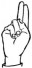 На ћирилици написано ДАВИД ГАЋЕ састоји се из 9 слова [?]. Исписано ћириличном једноручном азбуком за глувонеме: